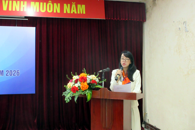 Tại hội nghị, TS. Phạm Thị Thúy Nga trình bày dự thảo Báo cáo tổng kết công tác năm 2025 và phương hướng, nhiệm vụ công tác năm 2026. Phần trình bày tập trung vào việc chỉ ra những mặt tích cực, nổi bật cũng như hạn chế, khó khăn trong hoạt động của Viện, từ đó đề xuất một số giải pháp khắc phục trong thời gian tới.