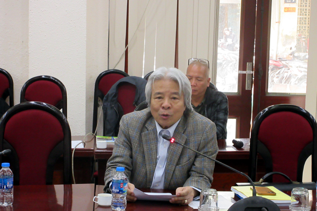 GS.TS. Võ Khánh Vinh trao đổi về bài báo cáo tại hội thảo
