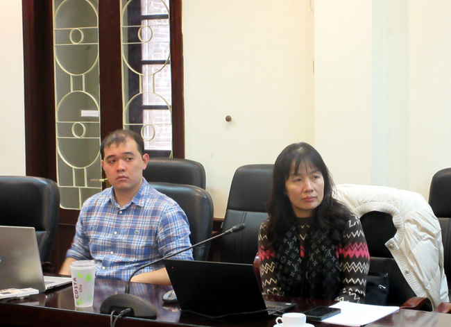 NCS. Trần Tuấn Minh (bên trái) và ThS. Nguyễn Ngọc Mai lắng nghe ý kiến trao đổi, thảo luận của các nhà khoa học