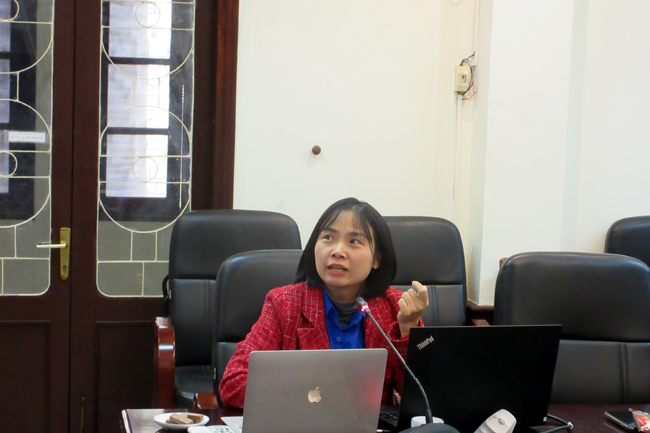 Đ/c Cao Thị Lê Thương trình bày tham luận mở đầu tọa đàm