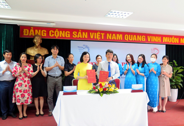 Đại diện cho hai bên, TS. Phạm Thị Thúy Nga (trái) và PGS.TS. Trần Quang Tiến ký thỏa thuận hợp tác