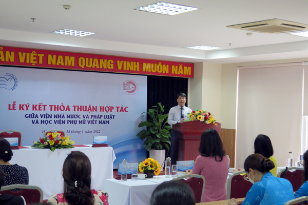 Ngày 28/04/2022, tại trụ sở Học viện Phụ nữ Việt Nam, 68 Nguyễn Chí Thanh, Hà Nội, Lễ ký kết thỏa thuận hợp tác giữa Viện Nhà nước và Pháp luật và Học viện Phụ nữ Việt Nam đã diễn ra thành công tốt đẹp.